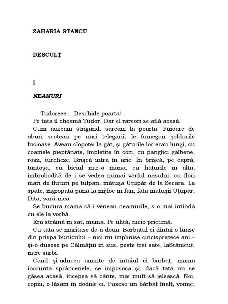 Toate rezultatele despre descult zaharia stancu. Romanul autobiografic al lui zaharia stancu este o frescă a comunităţii rurale din primii ani ai secolului xx. Livrarea se face din stoc din depozitul de carte libris, in zilele lucratoare.