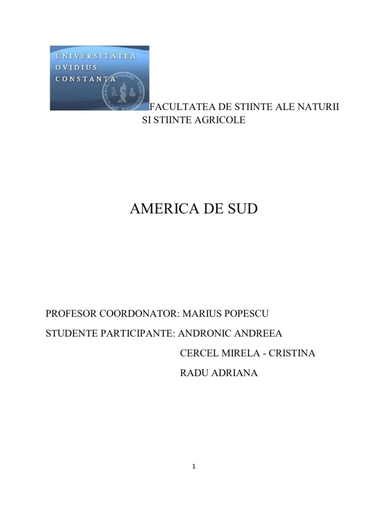 Nu dau mai multe detalii pentru ca nu ai nevoie de ele! America de sud este un continent descoperit și populat de spanioli la sfârșitul evului mediu. America de sud are o retea hidrografica densă.