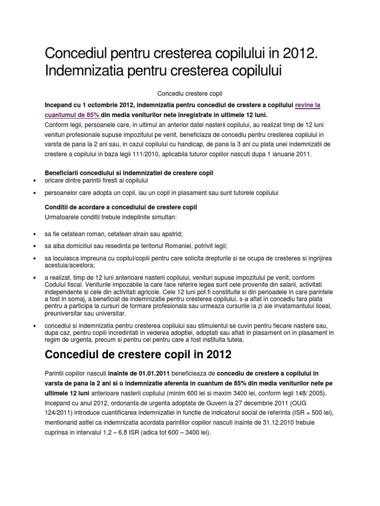 Potrivit art.11 din oug nr.111/2010 privind concediul si indemnizatia lunara pentru cresterea copiilor, dreptul la concediul pentru cresterea copilului stabilit potrivit prevederilor art. Nu vad de ce ar trebui sa te intorci la serviciu o luna. 26 din 7 aprilie 2021 modificări și completări ale normelor de aplicare a prevederilor oug nr.